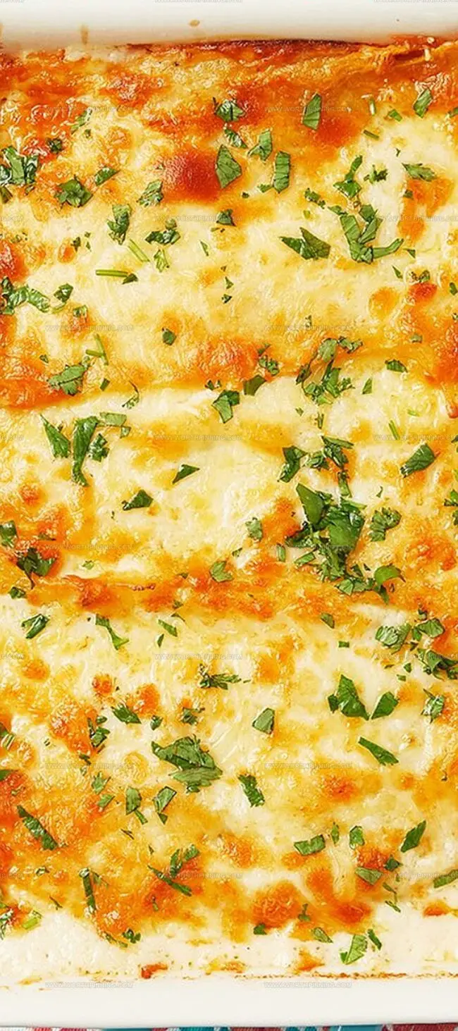 - Evenly pour the prepared cheese sauce over the rolled enchiladas, ensuring complete coverage. Optional: Add an extra layer of shredded cheese on top. Bake in a preheated oven at 350°F (175°C) for 30 minutes, or until the surface turns golden and the edges become bubbly. Before serving, generously garnish with freshly chopped cilantro.