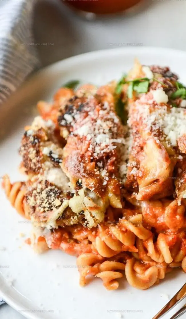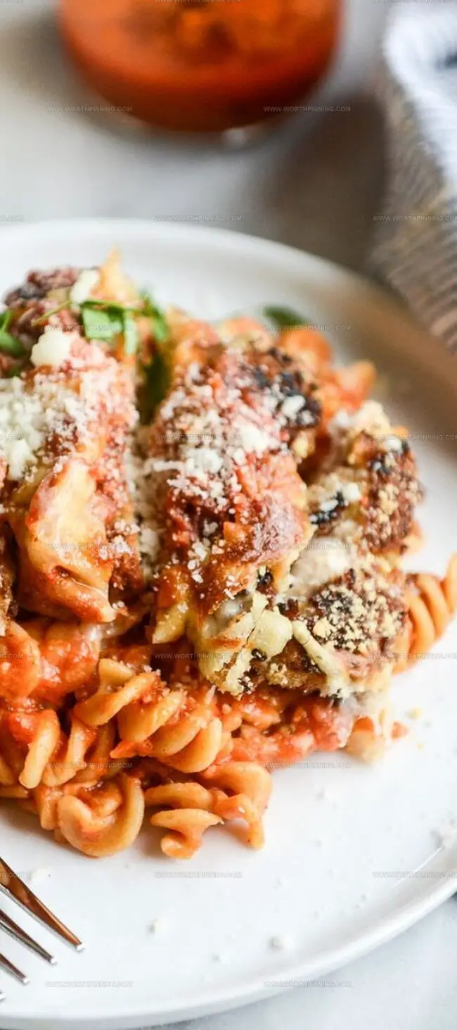 - Elevate texture by browning chicken first, creating a crispy exterior that stays crunchy even after baking with sauce and pasta.