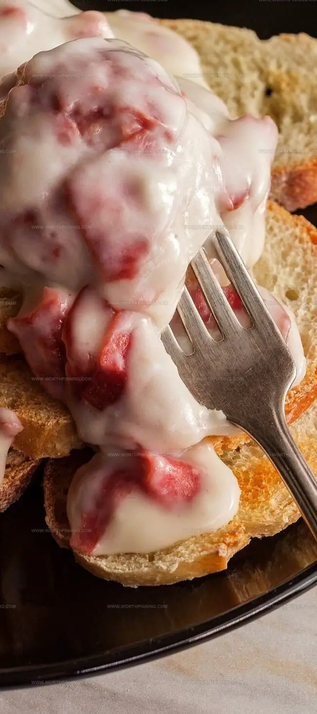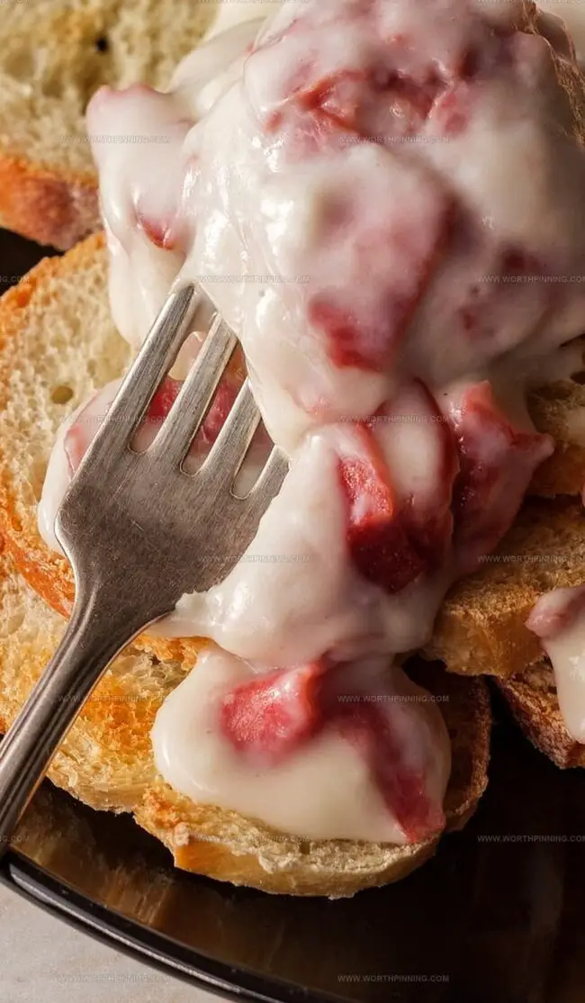 - Plate by arranging 2-3 slices of toasted sourdough bread. Lavishly drape the simmering beef and cream sauce over the toast. Finish with a sprinkle of freshly chopped parsley and a whisper of paprika for visual and flavor complexity.