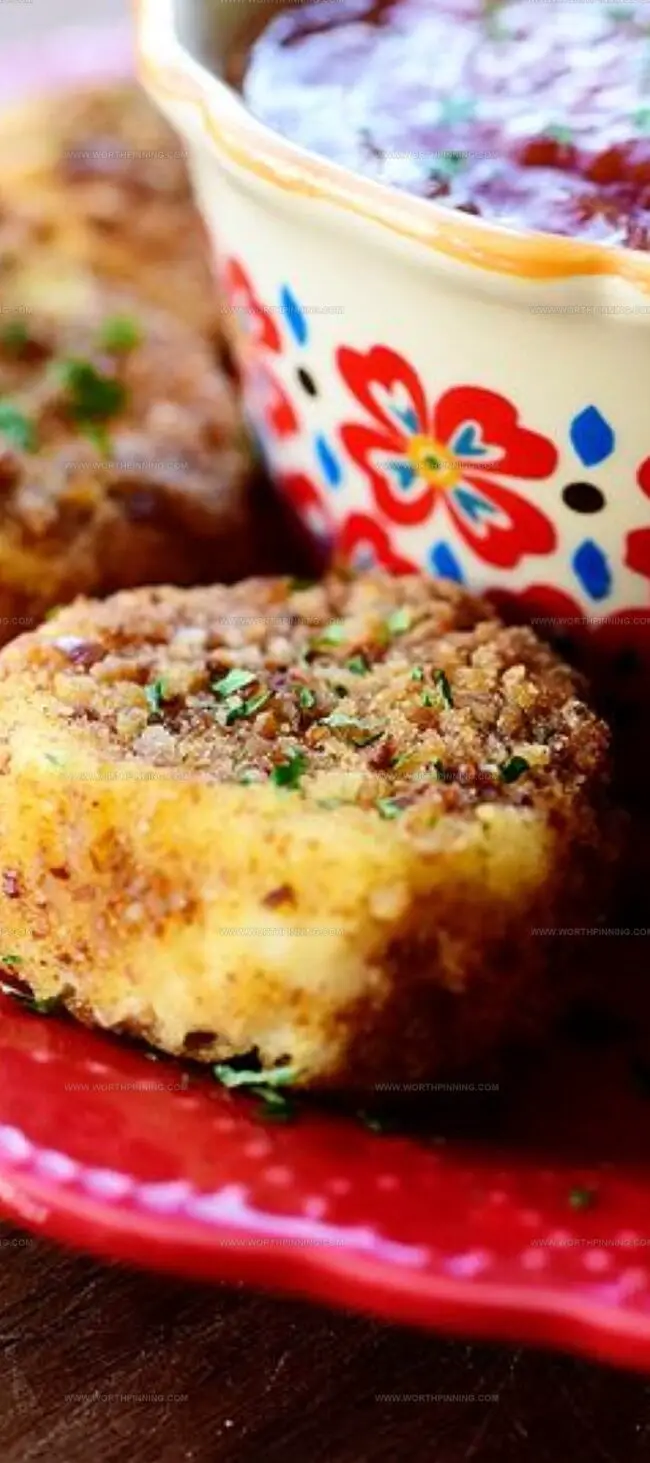 - Present the crispy goat cheese immediately, accompanied by marinara sauce for dipping. Enhance visual appeal and flavor by sprinkling freshly minced parsley as a vibrant garnish.