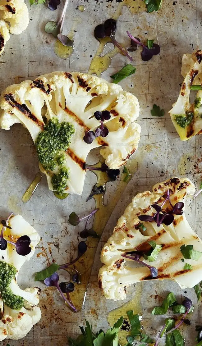 - Transfer the seasoned cauliflower steaks onto the preheated grill. Create a makeshift heat tent using a baking sheet or aluminum foil to trap moisture and promote even cooking. Grill for approximately 7 to 8 minutes per side, targeting a beautifully caramelized exterior with distinctive char marks.