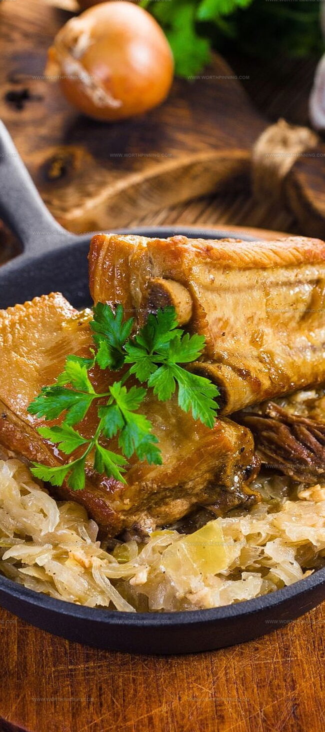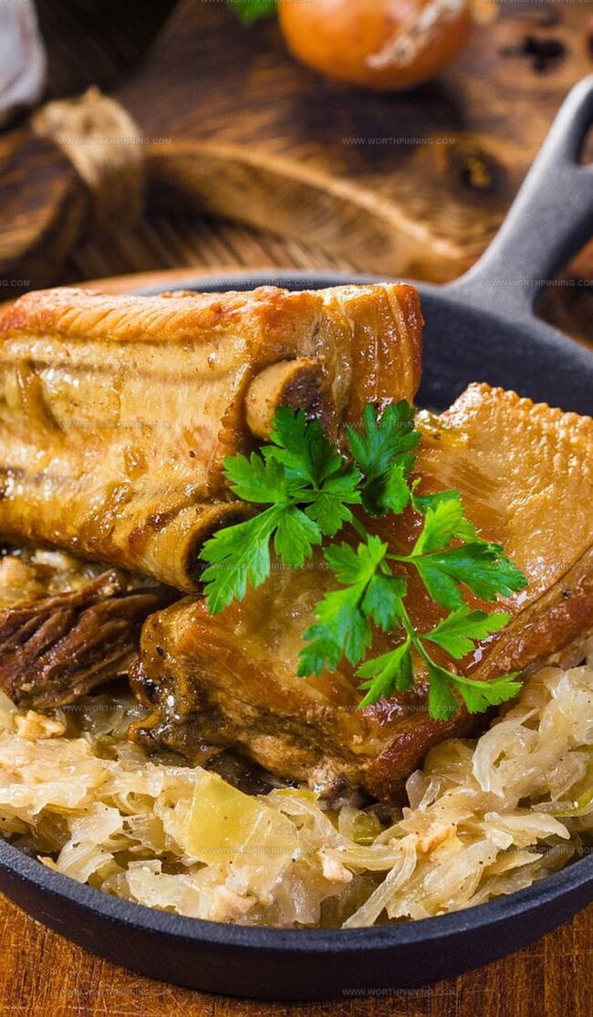 Pork ribs and sauerkraut bring together two culinary worlds that dance with robust, tangy flavors.