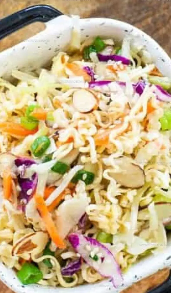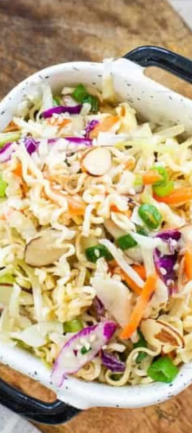 - Sprinkle slivered almonds and sesame seeds over the noodle and coleslaw mixture, providing a delightful crunch and nutty undertone to the salad.