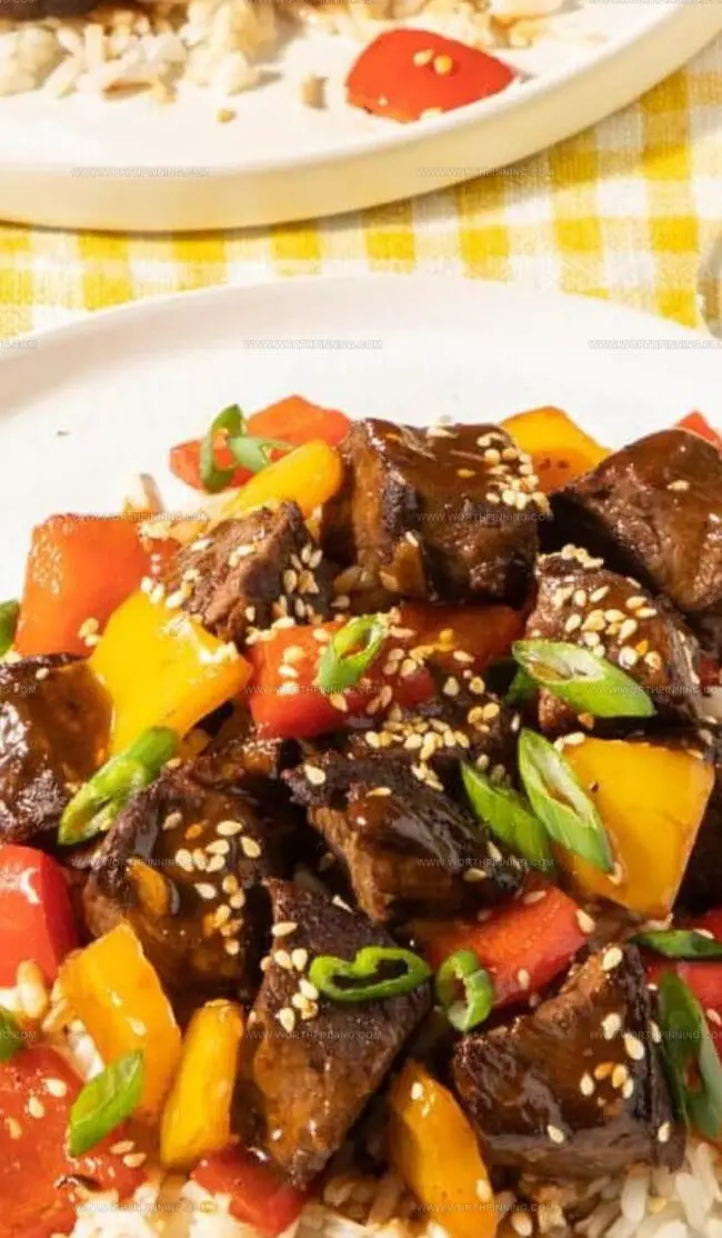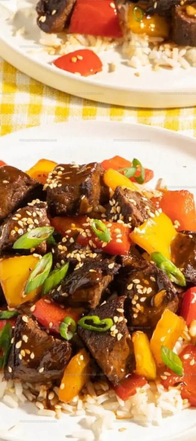 - Serve the steak and peppers over a bed of fluffy white rice. Optionally, garnish with thinly sliced green onions and a sprinkle of sesame seeds for added visual appeal and flavor complexity.