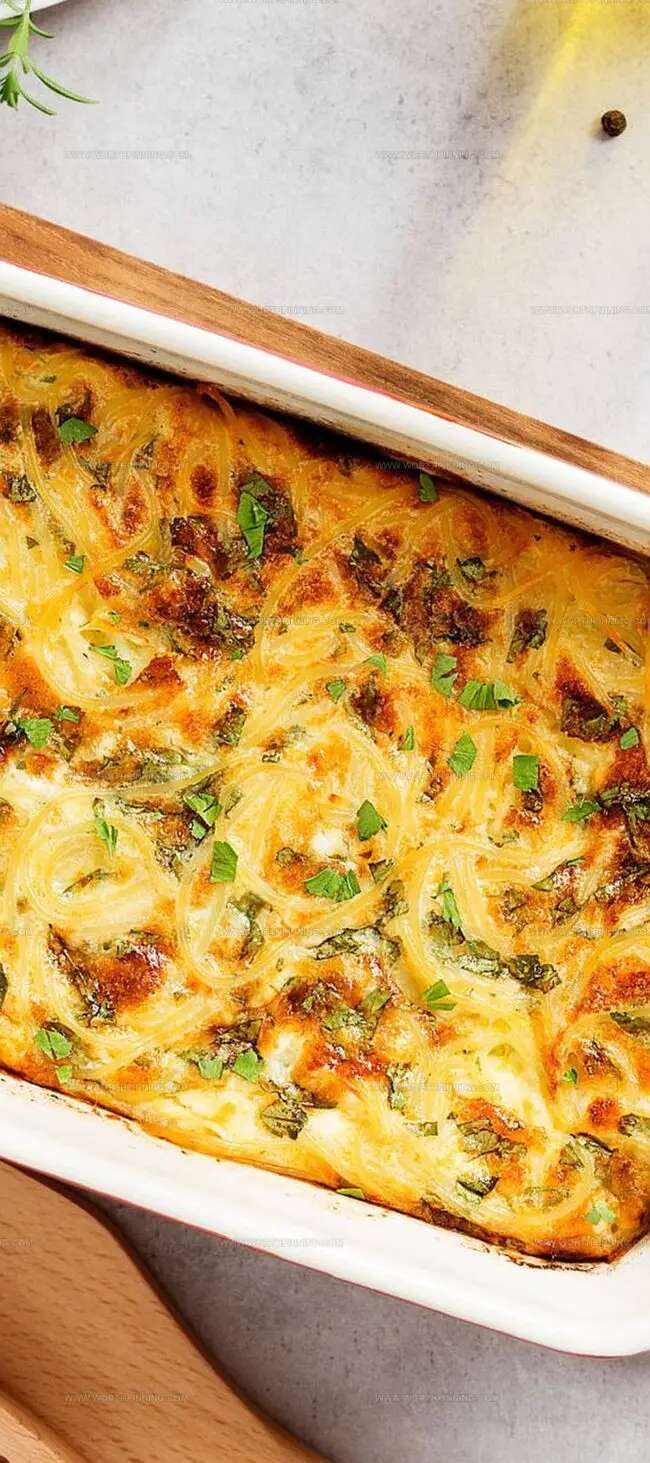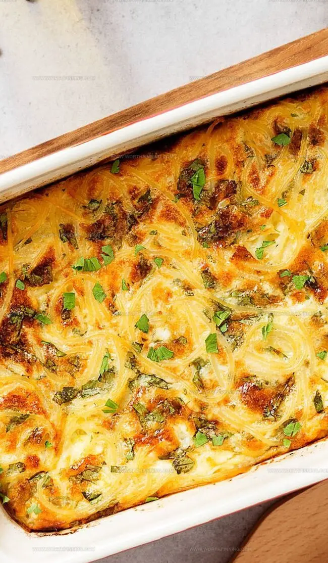 - Transfer the entire spaghetti mixture into a 13 by 9-inch (33 by 23 centimeters) baking dish, spreading it evenly to ensure a uniform layer of deliciousness.
