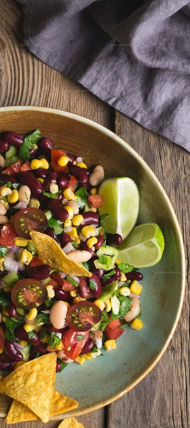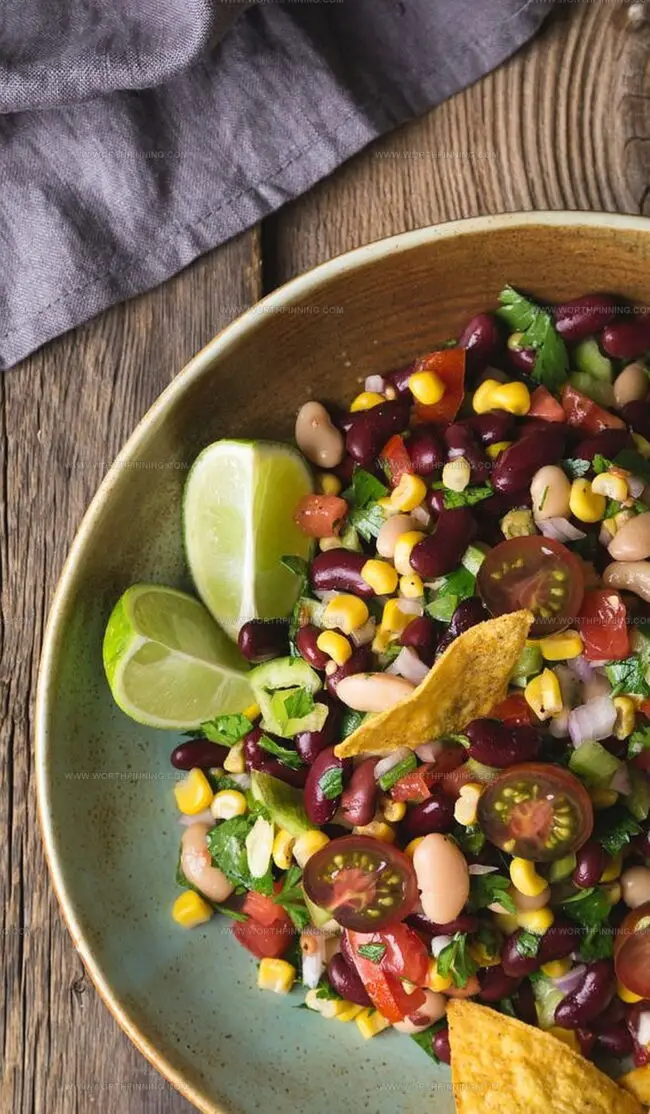 The combination of legumes, crisp vegetables, and tangy dressing creates a harmonious blend that feels both rustic and sophisticated.