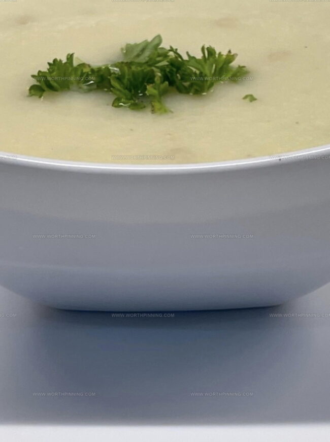 - Final Flourish: Adjust seasoning with salt and pepper to personal taste. Transfer the creamy soup into serving vessels, embellishing with a delicate cream swirl. Serve immediately, capturing the soup’s pristine temperature and rich, complex flavors.