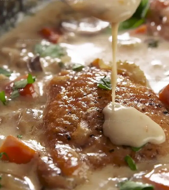 - Final Cooking Stage: Return seared chicken to the creamy sauce, partially submerging the pieces. Simmer gently for 15 minutes, allowing the chicken to complete cooking and the sauce to reach a luxurious, velvety consistency.