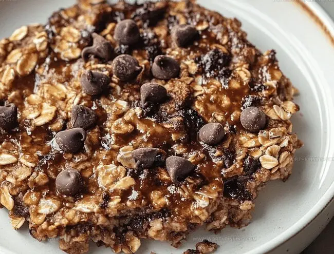 Serve with Greek Yogurt Swirl: Top the baked oatmeal with a dollop of tangy Greek yogurt. The creamy, protein-rich yogurt adds a delightful freshness and complements the chocolate chips.