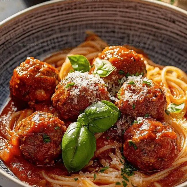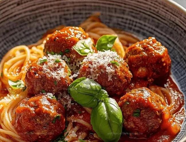 - Elegantly coat pasta with sauce, plate with succulent meatballs, and garnish with fresh basil leaves for a final flourish.