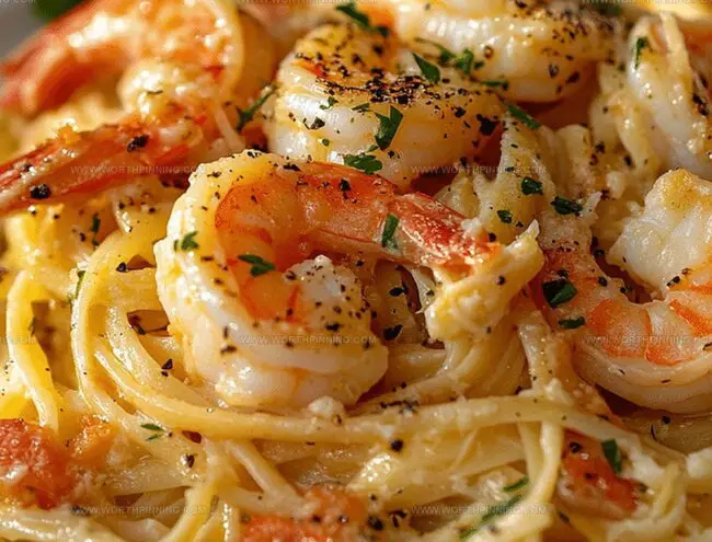 Seafood lovers and pasta enthusiasts will find this delightful combination irresistibly satisfying and wonderfully indulgent.