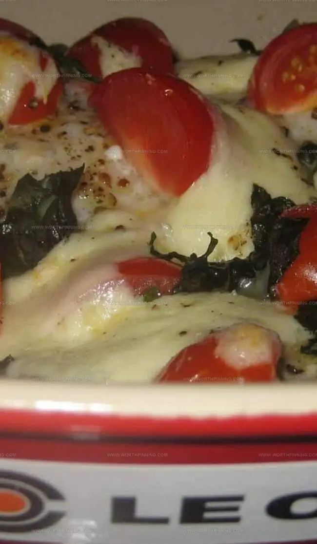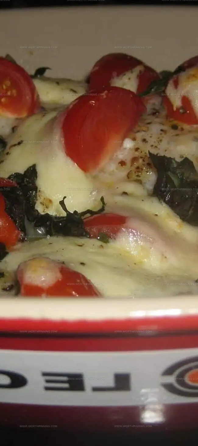 Succulent fish nestles among sweet tomatoes and rich, melting cheese, creating a symphony of tastes.