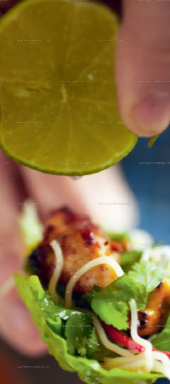 Arrange grilled chicken skewers, crisp lettuce leaves, tangy noodle salad, and colorful fruit platter on the table. Serve with lime halves and creamy coconut yogurt. Invite guests to build their own plates, adding extra soy sauce or lime juice to taste.
