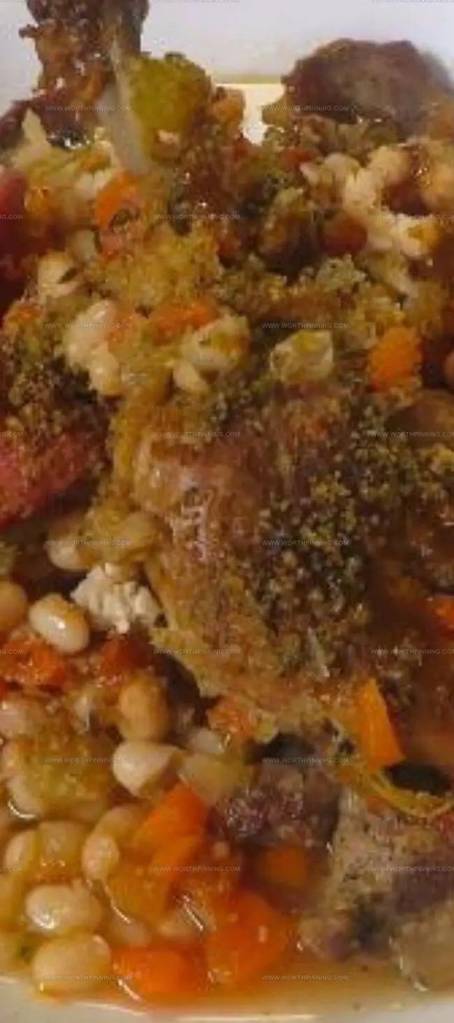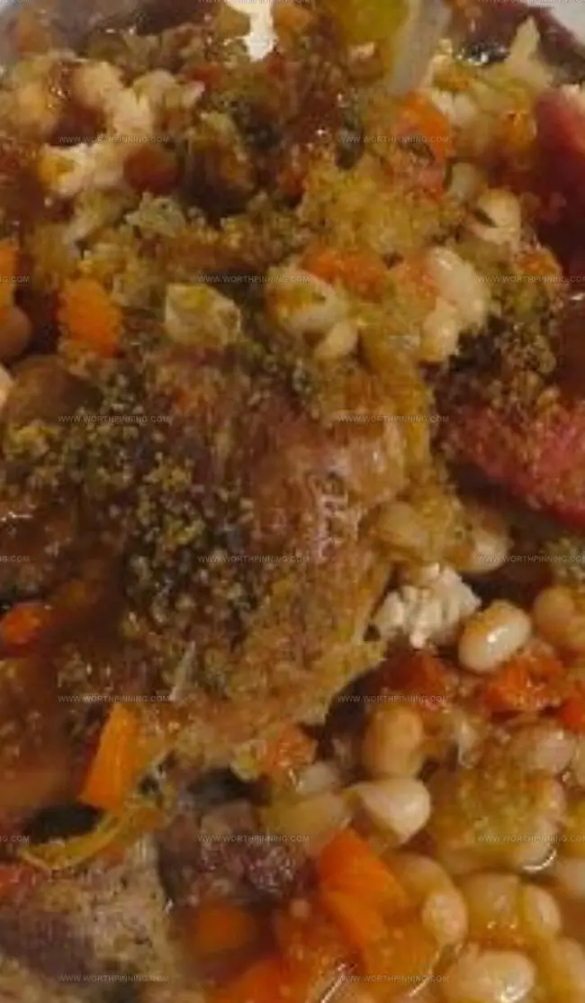 - Slow Roasting: Drain pre-soaked navy beans and combine with herb-infused vegetable mixture. Pour over arranged meats in roasting pan. Cover and roast for 3 hours, allowing meats to become incredibly tender and flavors to meld completely.