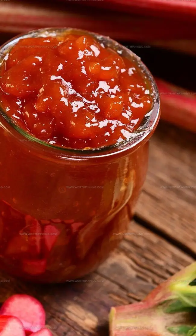Remove from heat and let cool briefly. Carefully transfer the vibrant jam into clean glass jars. Secure lids tightly, label with the creation date, and store in a cool, dark pantry. Your homemade rhubarb jam will keep for several months, ready to brighten breakfast or dessert.