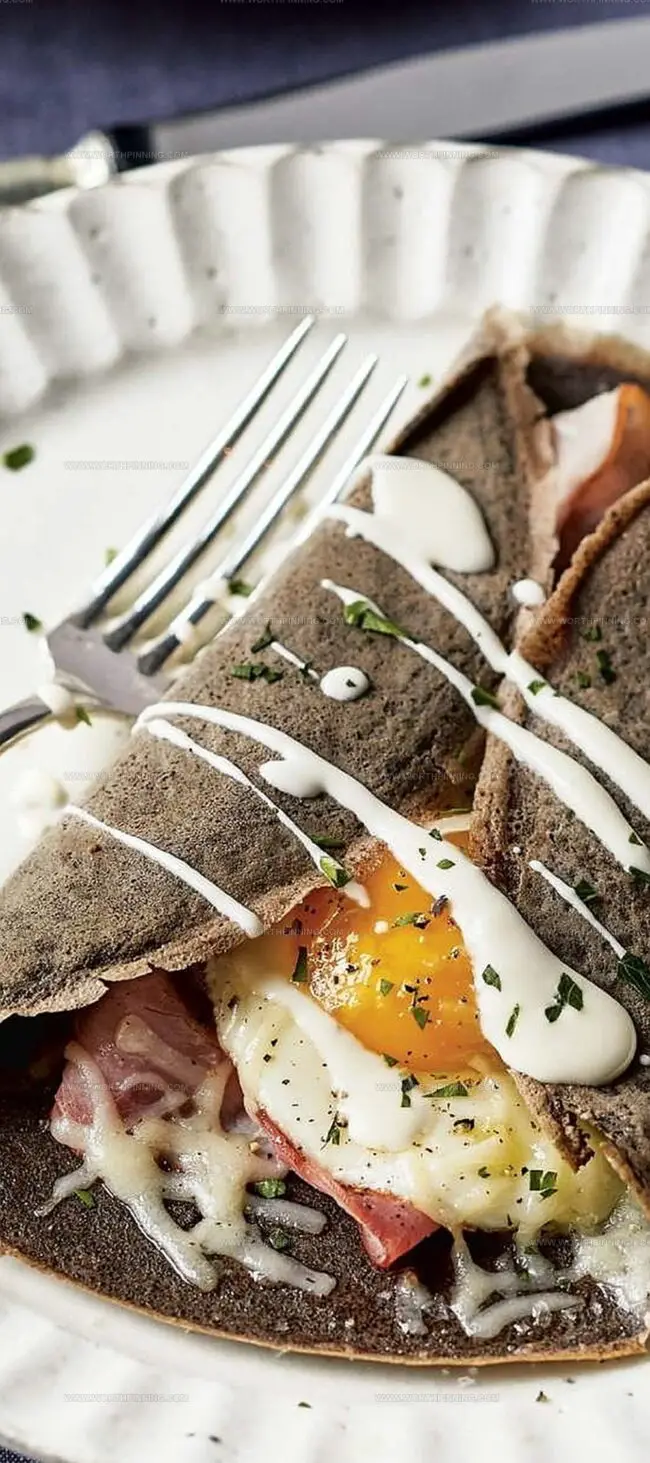 Filling Moment Layer each crepe with tender ham and rich Gruyère cheese, transforming simple ingredients into a luxurious breakfast experience. The cheese will melt into tantalizing rivers of flavor.