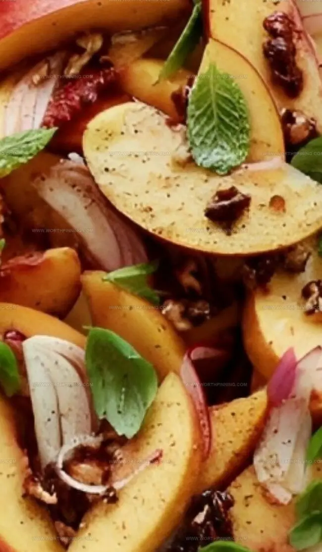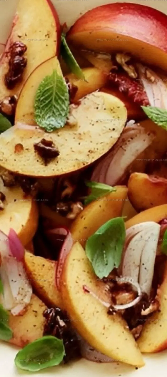 - Flavor Infusion: Introduce marinated onion slivers into the vinaigrette, allowing them to absorb the nuanced flavor profile. Add ripe peach wedges, toasted candied walnuts, and freshly torn basil and mint leaves.