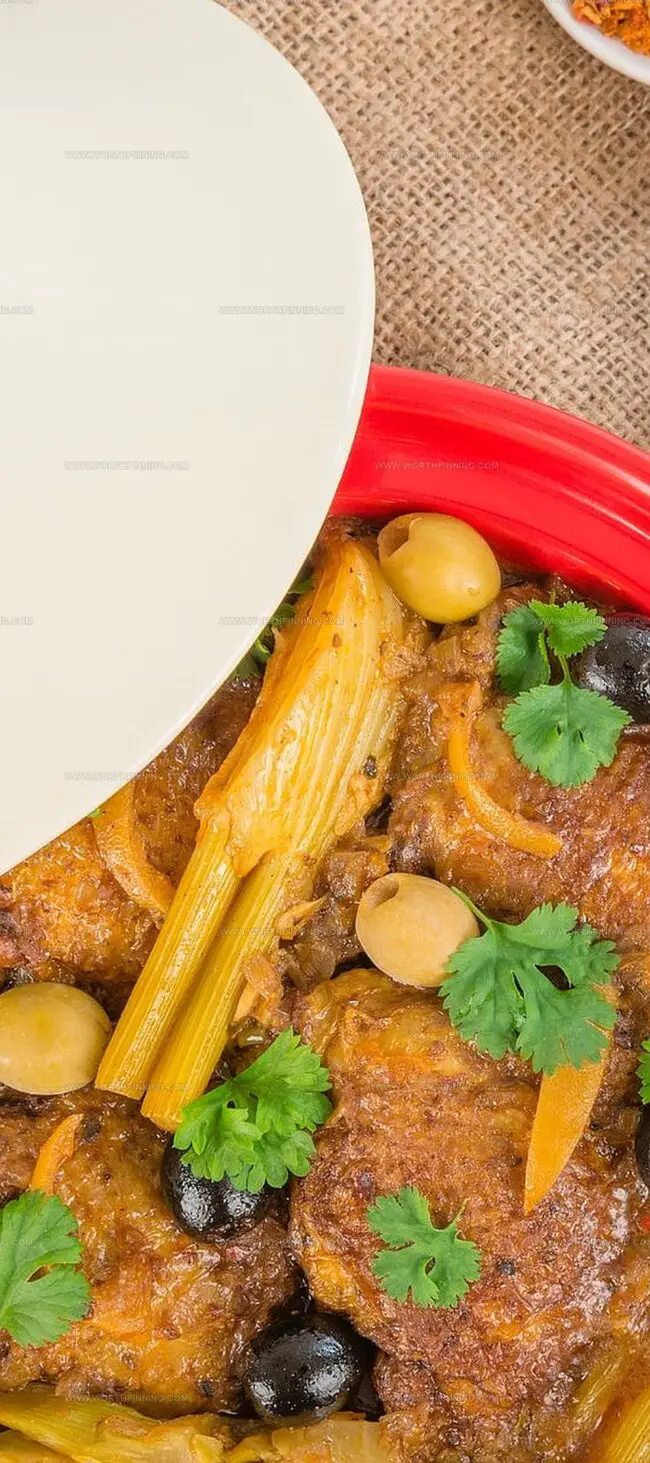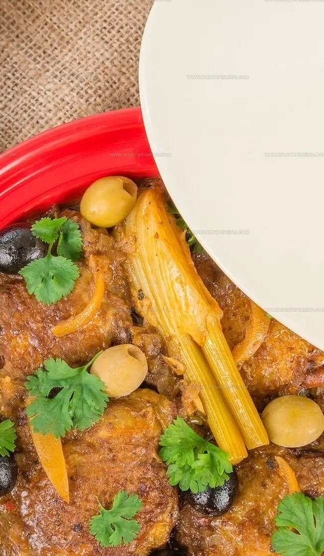 Moroccan chicken tagine celebrates North African culinary traditions with aromatic spices and tender meat. Slow-cooked ingredients meld together, offering you a delicious journey through Moroccan flavors and kitchen wisdom.